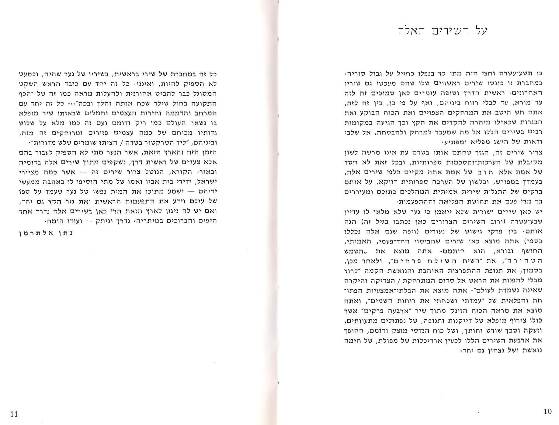 בן תשע-עשרה וחצי היה מתי כץ בנפלו כחייל על גבול סוריה. במחברת שירים זו כונסו שירים ראשונים שהם מעכשיו גם שיריו האחרונים. ראשית הדרך וסופה עומדים כאן סמוכים זה לזה עד מורא, עד לבלי רווח ביניהם, ואף על פי כן, בין זה לזה, אתה חש היטב את המרחקים הצפויים ואת הכול הבוקע ואת הבגרות שכאילו מיהרה להקדים את הקץ וכך הגיעה במקומות רבים בשירים הללו אל מה שמעבר למרחק ולהבטחה, אל שלבי ודאות של הישג מפליא ומפתיע.